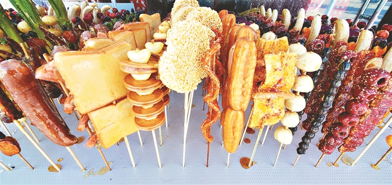 春节期间,哈尔滨冰雪大世界创新推出新春活动“万物皆可冰糖”。在这里,除了能吃到传统的冰糖葫芦、冻梨、冻柿子等美味,还能一尝冰糖辣椒、大蒜、大葱、香肠、辣条、西蓝花、方便面、生姜等多种美食!不仅如此,现场还有祈福和抽奖活动,游人争相为虎年吉运讨个好彩头。初一开始,冰雪大世界还举行了“新春达人打卡活动”,邀请微博、抖音、小红书等平台上的大V来园区打卡,和达人粉丝一起为冬奥助力加油。