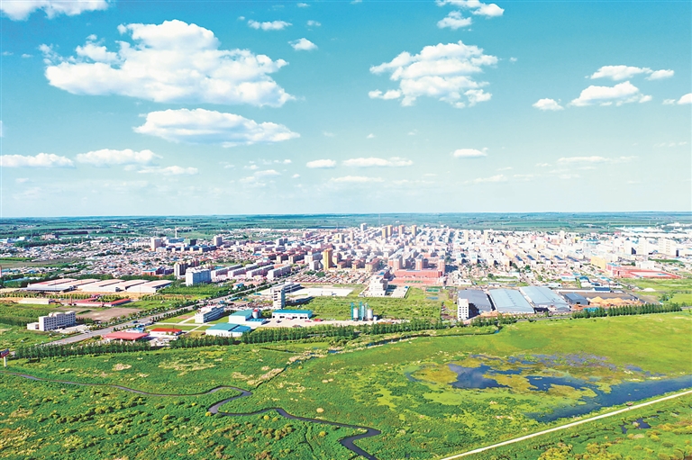 湿地环绕的拜泉县城。