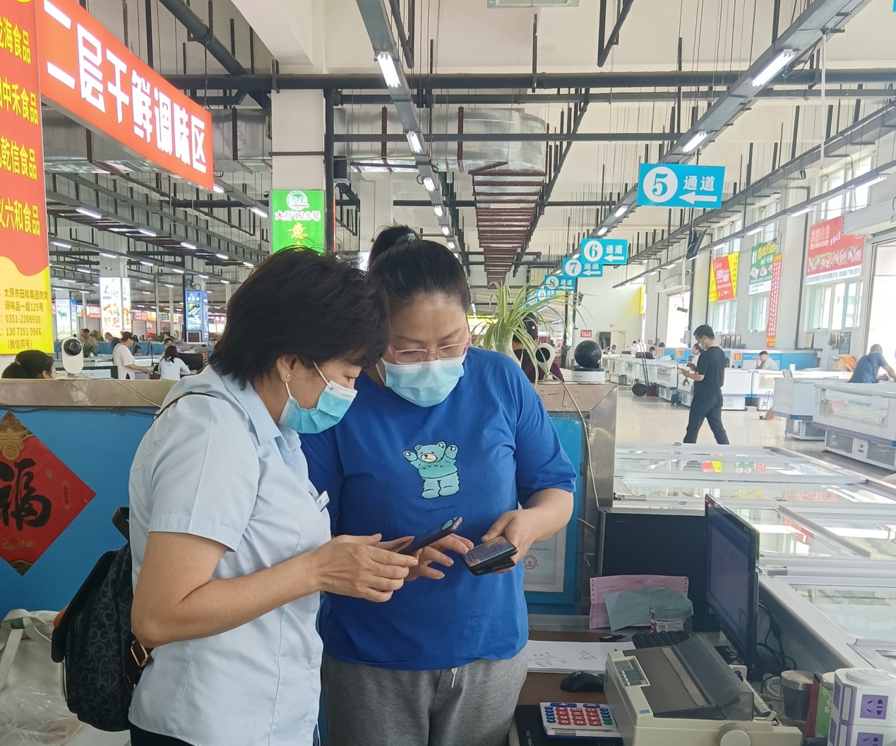 建行山西太原南城支行工作人员指导消费者领取政府消费券