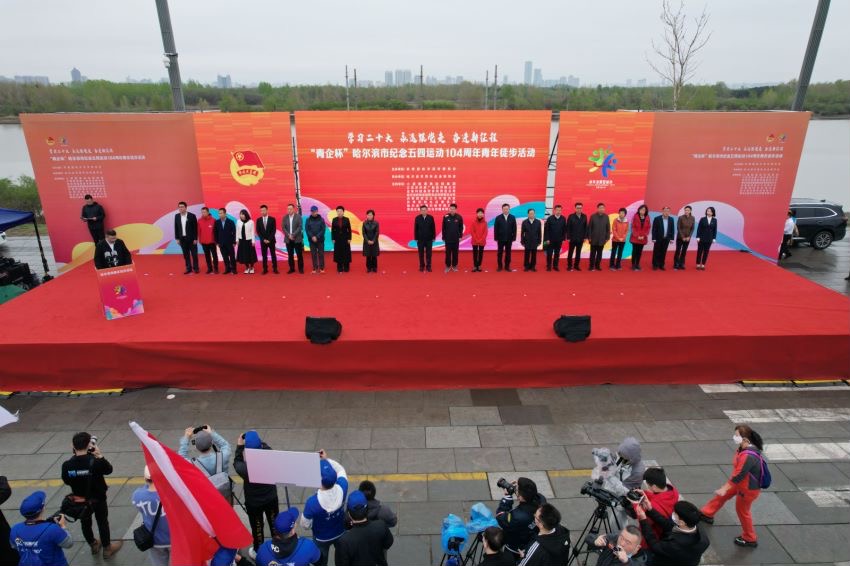 国际在线黑龙江消息(记者 于灵爽):5月4日,共青团哈尔滨市委举办“学习二十大、永远跟党走、奋进新征程”纪念五四运动104周年青年徒步活动。来自全市企事业单位、高校、青联以及各区各行业的青年代表共计3000余人参加徒步活动。
