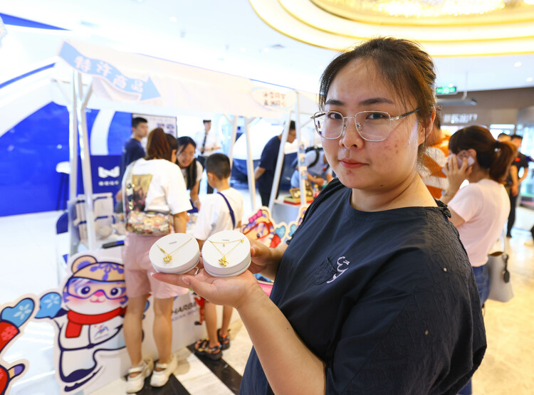 15时,记者在龙塔一层看到,活动现场精心布置了丰富的中俄文化元素装饰,从细腻的工艺品到生动的图片展示,每一处细节都彰显着两国文化的独特魅力。活动由外籍艺人演奏的精彩手风琴表演拉开序幕,魔术表演更是引得现场响起阵阵掌声。“快看,这就是亚冬会吉祥物!”亚冬会吉祥物“滨滨”和“妮妮”的出场将现场气氛推向高潮,孩子们的尖叫声、欢笑声不绝于耳,有的拉住“滨滨”和“妮妮”的手,有的举起手机拍照留念。