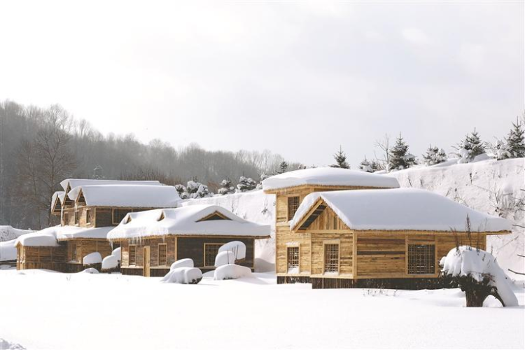威虎山雪村,静卧于龙江森工柴河局公司卫星林场,以“原生态”为王牌,尽显冰雪本真之美。此地降雪期长达半年,年均降雪量达2米,黏稠的雪质经大自然鬼斧神工地雕琢,幻化成形态万千的雪檐、圆润可爱的“雪蘑菇”等独特景观,宛如童话世界。踏入原始“六十四户”观景区,错落有致的木屋被厚厚的积雪掩至屋檐,一串串黄玉米、红辣椒如彩带般悬挂在屋檐下,与皑皑白雪相互映衬,勾勒出一幅充满林区旧时光风情的温馨画卷。游客置身于此,既能沉醉于童话般的雪韵奇景,又能尽情参与滑雪、雪圈、雪地摩托、马拉爬犁等丰富多彩的冰雪娱乐项目,在冰雪的怀抱中感受东北民俗的烟火温情。
