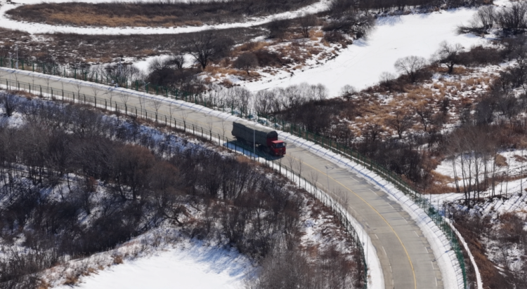 行驶在公路上的俄方货车