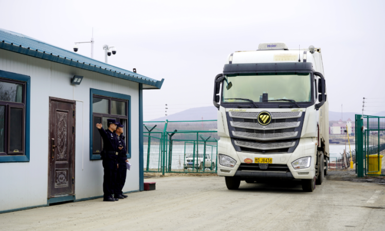饶河出入境边防检查站民警对入境货车实施现场监护 图片由受访单位提供